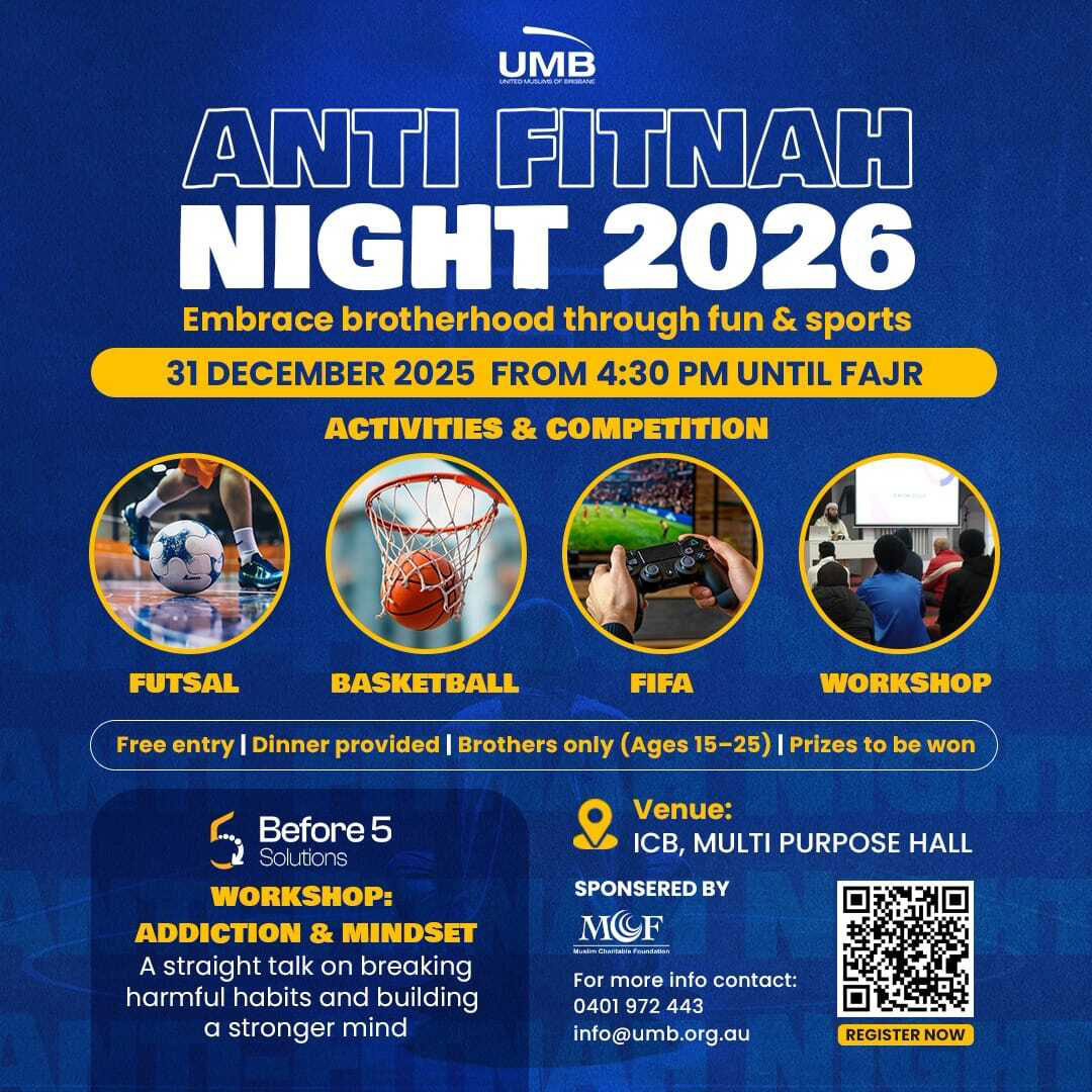 The United Muslims of Brisbane (UMB) is a Masjid, a non-profit organisation, with a focus on community.